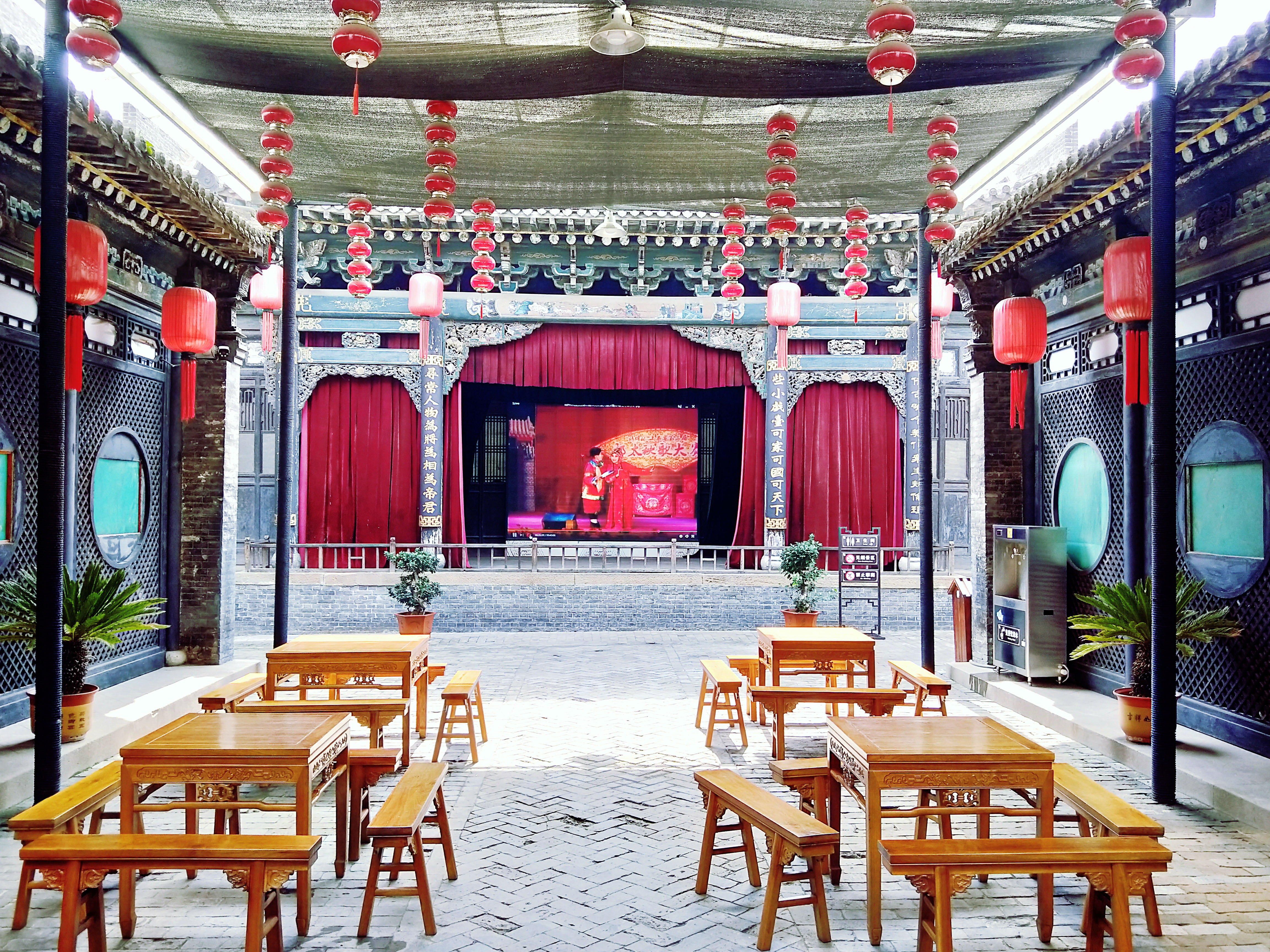孬张与老伴去过很多古城古镇,对古建筑略有些了解,但迈进十分罕见的五进式穿堂院,我对渠家大院的设计者顿生敬意。这里海明楼院、统楼院、栏杆院、戏台院巧妙组合,错落有致;悬山顶、歇山顶、卷棚顶、硬山顶形式各异,主次分明,浓缩着中国传统文化元素和深厚艺术底蕴。