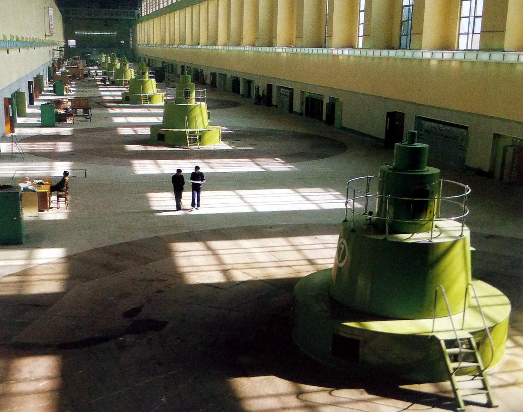 【注】哈电、东电,乃哈尔滨电机厂和东方电机厂简称。330工程乃闸坝式低坝,径流式电站(大江与二江两座),电站最大水头 27 m, 最小水头 8 .3 m, 异常最小水头 6.3 m, 额定水头18.6 m 。 电站出力随来水量变化而变化,:枯水期来水量小, 水头高,;洪汛期来水量大, 水头低,。