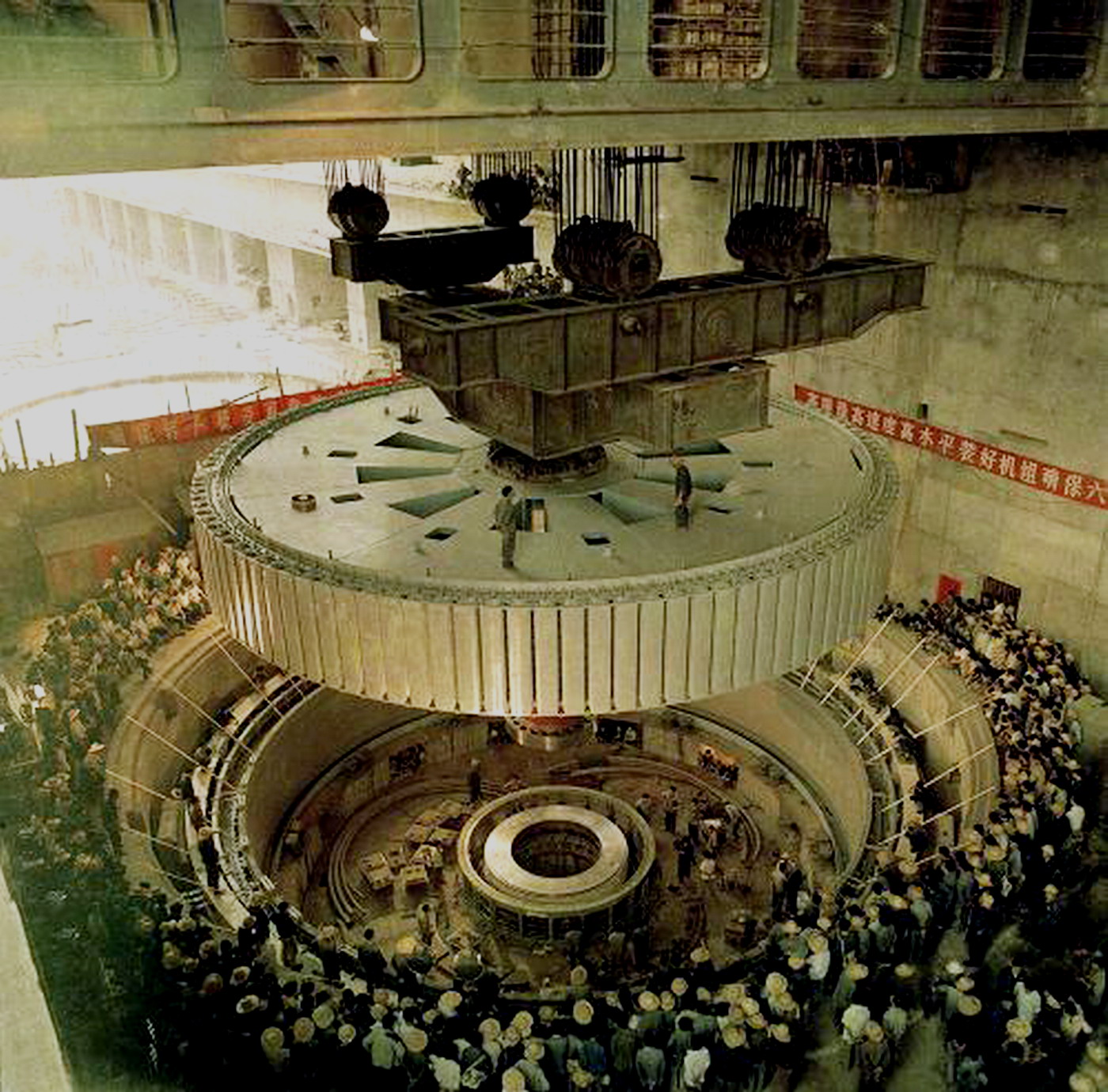 由于枯水流量和汛期洪峰流量相差悬殊, 故要求水轮机必须能够适应这种大幅度的水头变化, 尤其在异常最小水头时,机组还能过水发电。此机组由国内哈尔滨电机厂和东方电机厂分别研制。经不懈攻关,时为世界上尺寸最大的两套17万千瓦低水头大型轴流转浆式水轮发电机组,由哈尔滨电机厂和东方电机厂研制成功。1981年12月27日,被称作一期工程的葛洲坝电站二江电厂1、2号机组投产发电,湖北省长韩宁夫出席并剪彩。