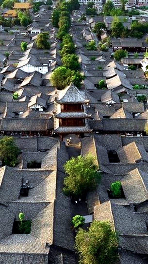 说阆中是风水古城,人文底蕴深厚之古城,绝非虚言。阆中古城立于山环水绕之吉地,其建筑布局,凸显中国古代风水学龙、砂、穴、水地理四科之"穴"象。古城中天楼,秉承"天心十道"风水之寓意。城内街巷,均以中天楼为核心,以十字大街为主干,层层展开,布若棋局。
