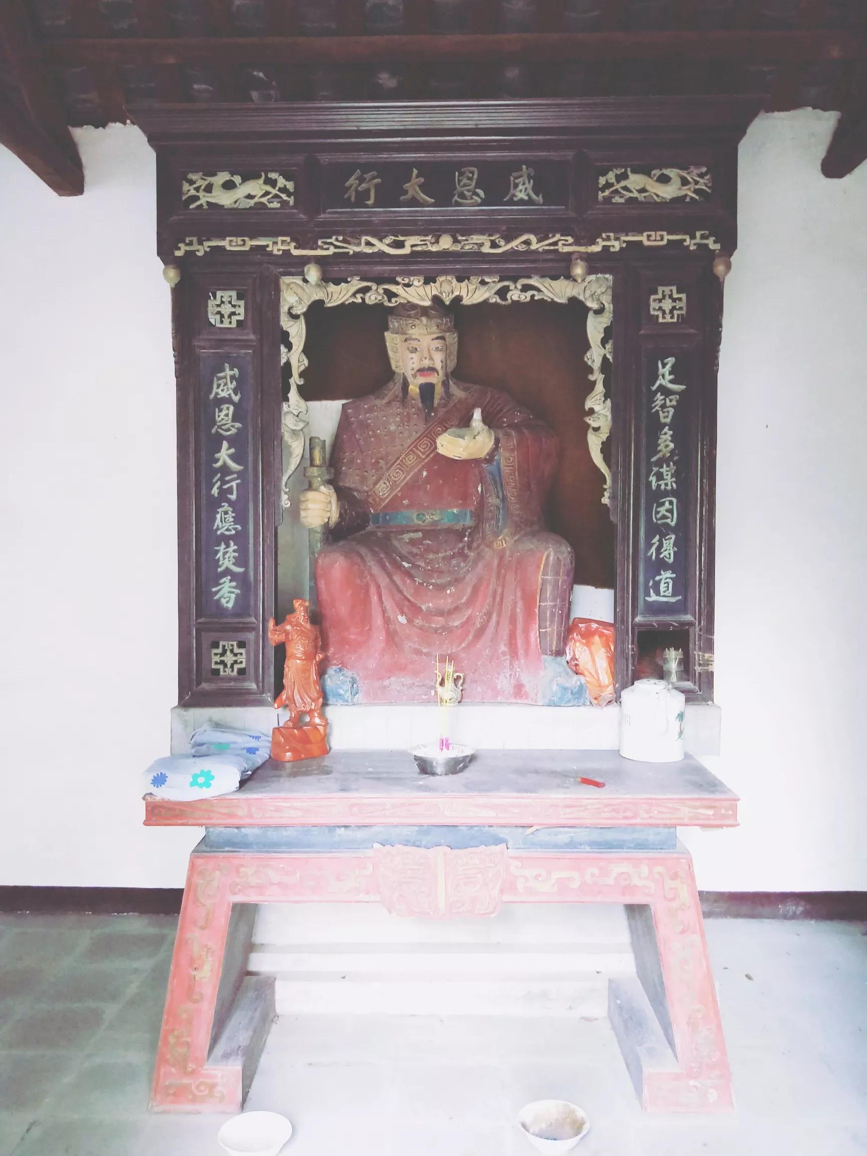墓门左侧有祭祀小祠,内塑都督鲁子敬,颇为传神。神龛上有香,孬张擎香三柱躬身三拜,表达追思与崇敬之情。