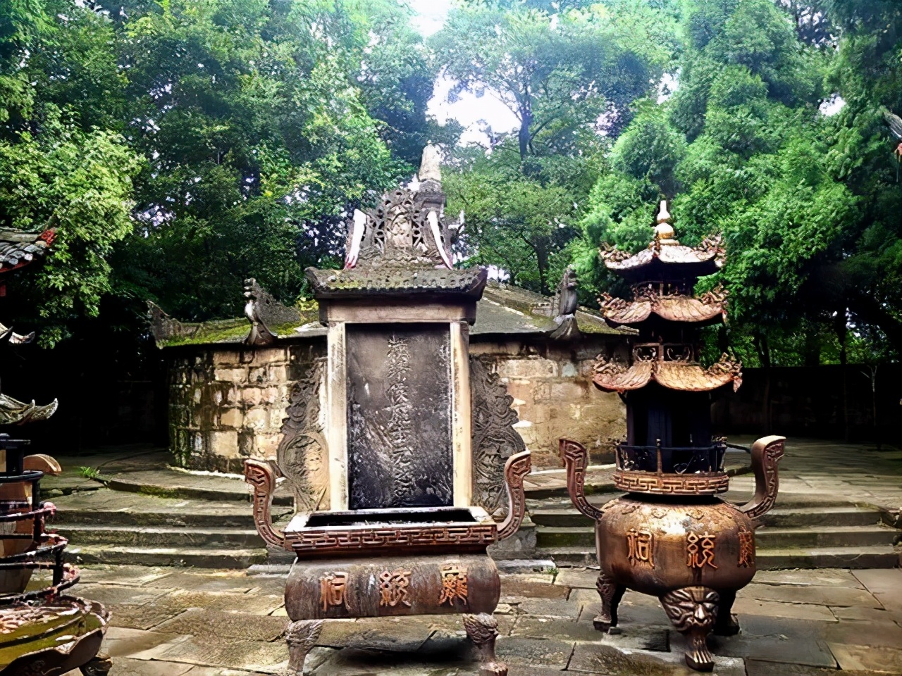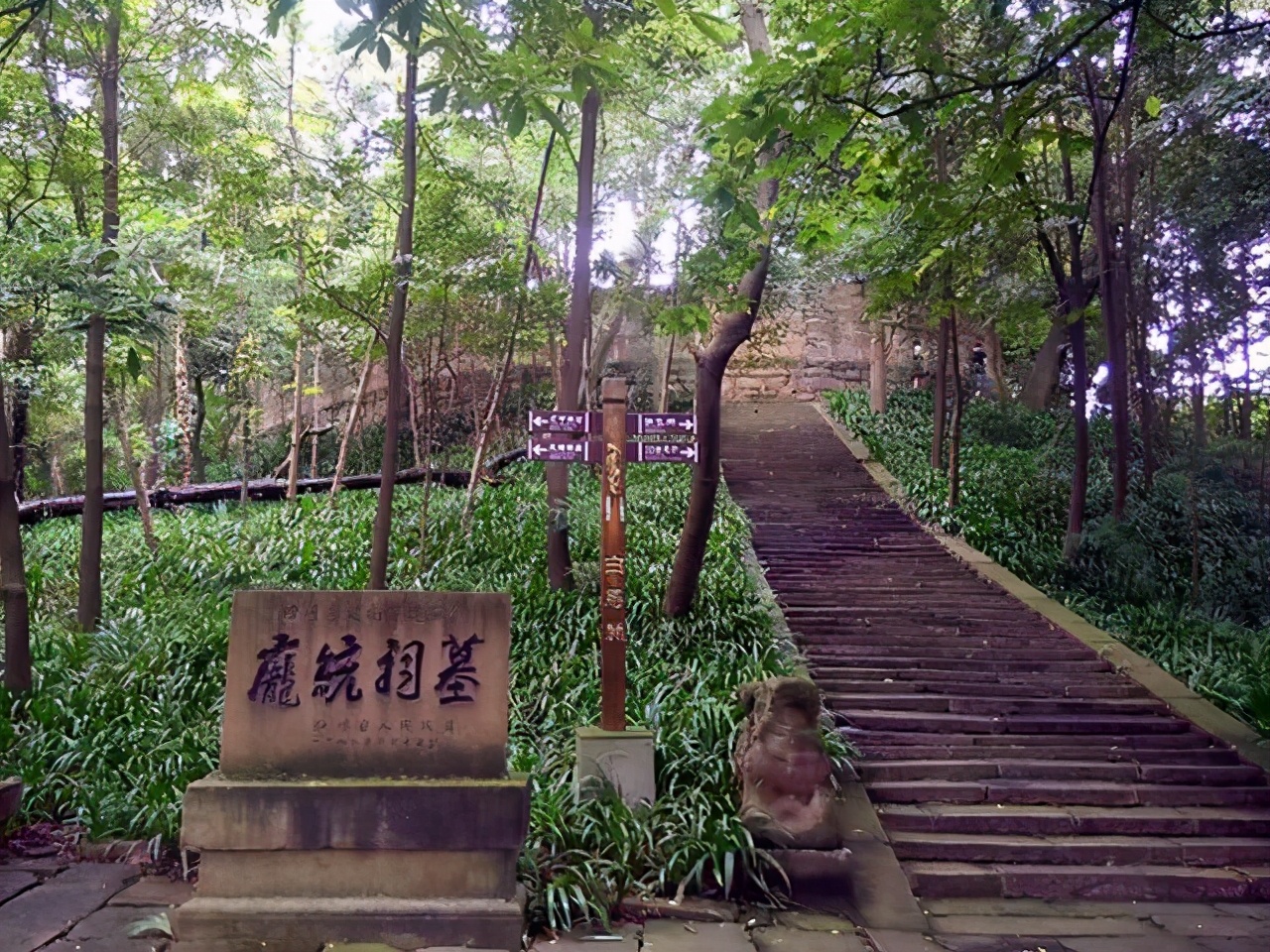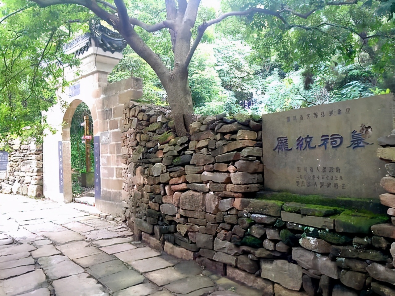 进入城门,正中即千古金牛道原址,脚踏这凸凹石板路,仿佛真可返回蜀汉王朝岁月。沿右边条石围成的雅园,山坡上便是庞统祠墓,翠柏掩映,肃穆庄严。它是四川最早、保存最为完整的一处三国蜀汉遗迹,既为蜀汉政权兴亡见证地,也是全国唯一祭祀三国政治家、军事家庞统的专祠。