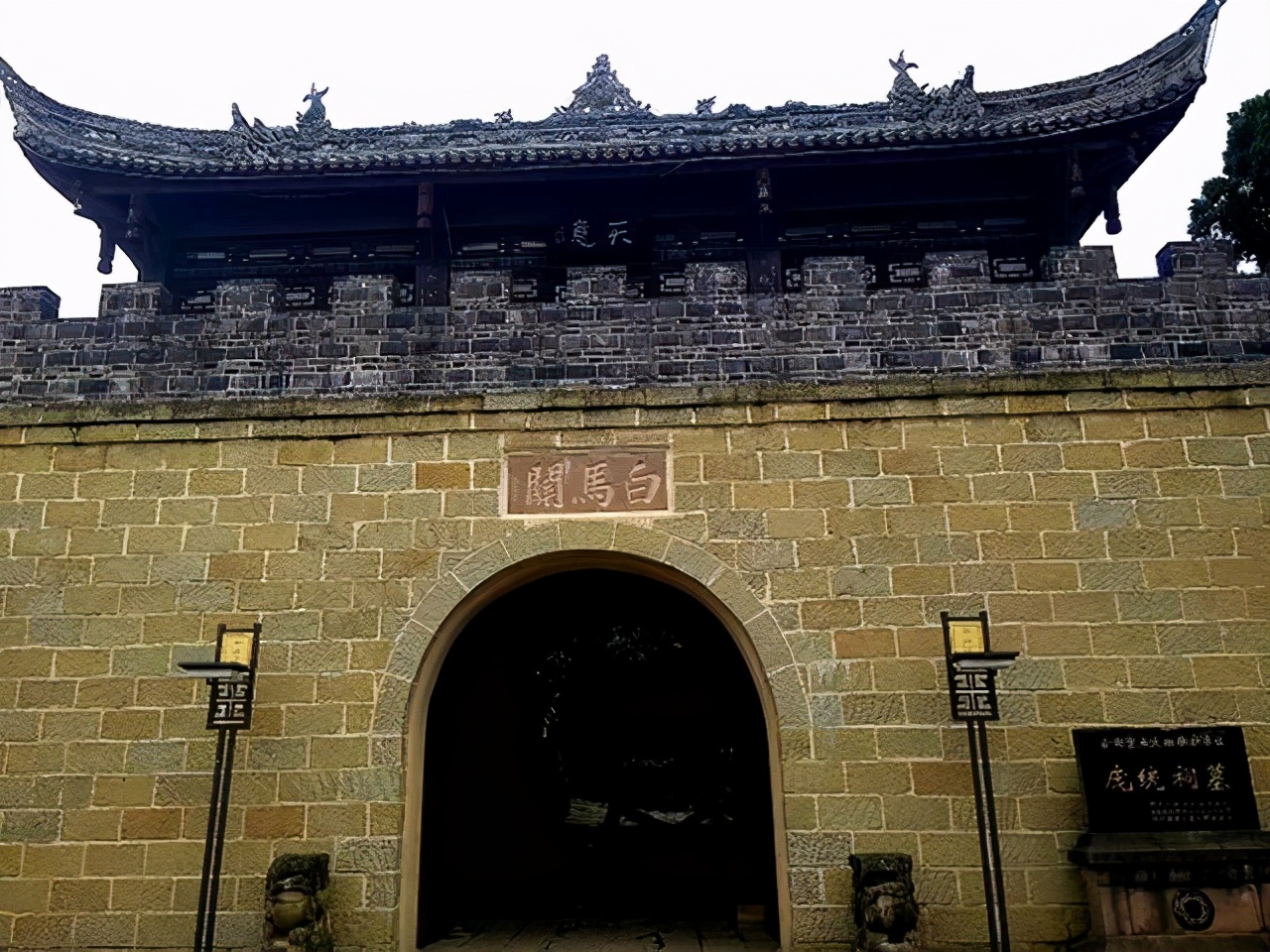 眼前的关楼气势雄伟,乃清代复建。关楼上"白马关"之关名,乃宋朝大文豪、眉山先贤苏轼的墨宝。陆游当年来此曾哀叹其荒凉,诗作名《鹿头山过庞士元墓》:“士元死千载,凄恻过遗祠。海内常难合,天心岂易知。英雄千古恨,父老岁时思。苍藓无情极,秋来满断碑”。
