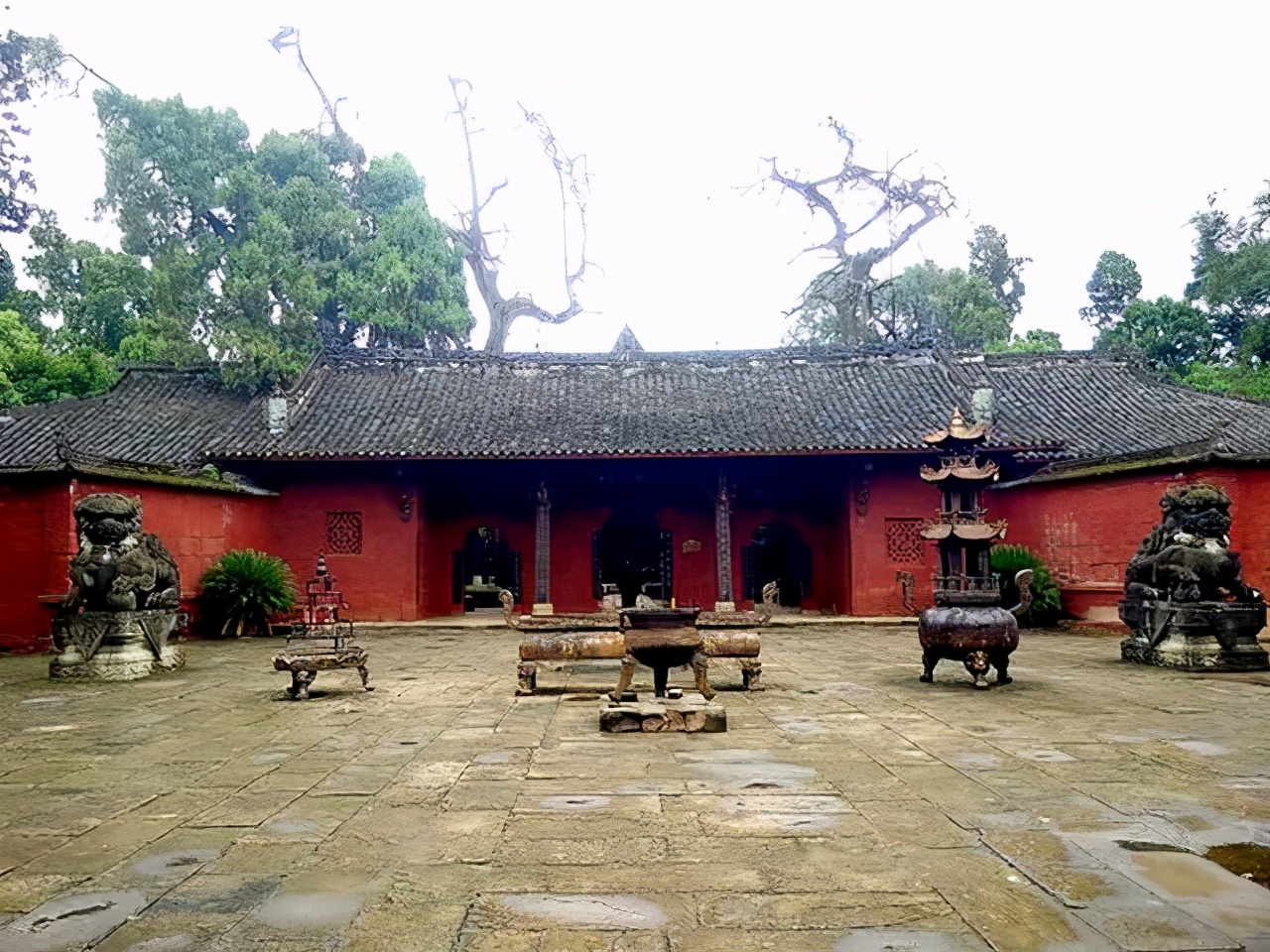 公元1682年,王屏藩乱蜀,庞统祠墓毁于战火。现祠乃康熙三十年四川巡抚能泰在原祠墓基础上复建。庞统祠墓共分为门厅、二师殿、栖风殿和墓园四部分。