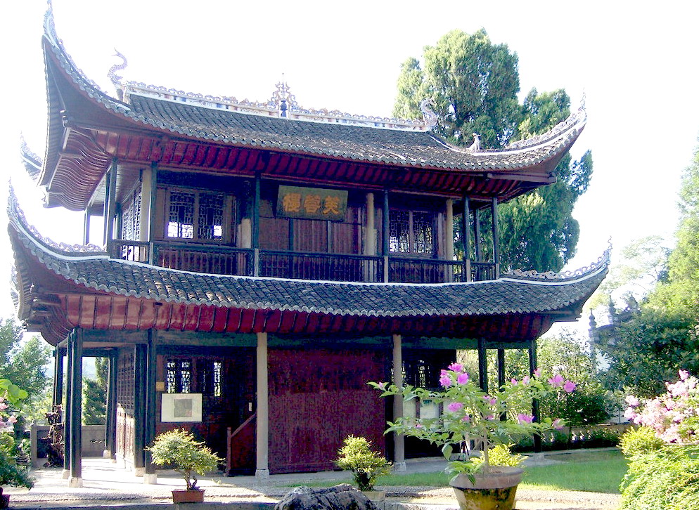 县尉王昌龄曾在龙标兴建芙蓉楼,辟为饮酒赋诗、宴宾送客之地。后年久失修,旧址荒芜。清嘉庆二十年,当地官绅为纪念这位著名诗人,在城西香炉岩辟地作园,修建了芙蓉楼。现建筑,为清道光十九年重修。黔阳古城保存完好,孬张几年前造访,见古城墙旁还耸有王昌龄塑像哩。