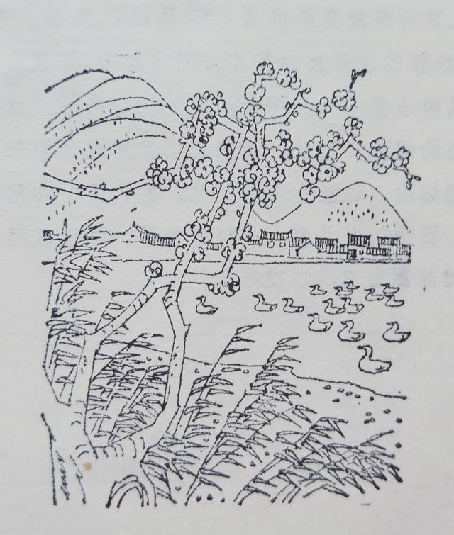 诗的前两句说春天来到了,青翠的竹林以外有三两枝桃花绽开。江水已开始变暖,人还没觉察出来,鸭子却先知道了。因为它们早就去游水了。后两句是说:蒌蒿遍地滋长着,芦笋刚刚生出,还很短小;这正是河豚将要浮上水面的时候。