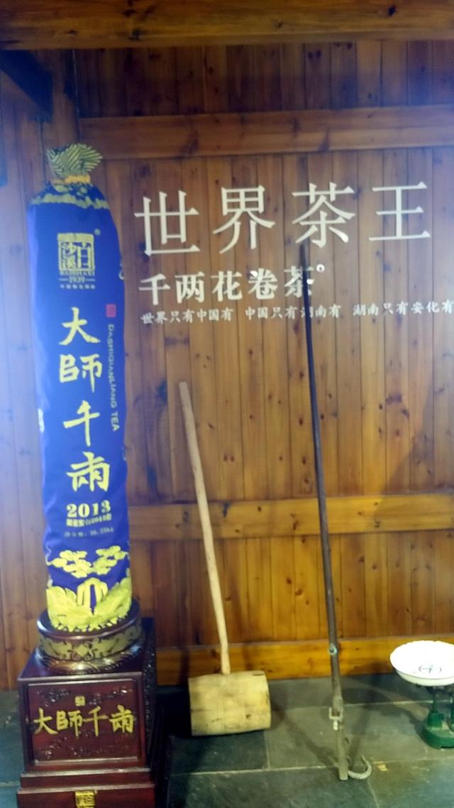 真是不虚此行啊,来白沙溪茶业公司,看展览、观影像、睹实物,对黑茶有了常识性了解。安化黑茶主要品种有"三尖"、"三砖"缎"一卷":三尖茶又称为湘尖茶,指天尖、贡尖、生尖;"三砖"指茯砖、黑砖和花砖;"一卷"乃花卷茶,称安化千两茶。
