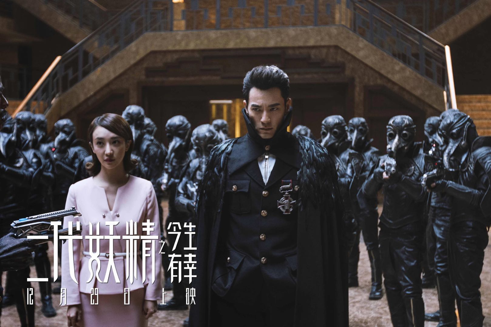 李光洁一身正装,显得范儿很足,同时也很强势。影片通过很多细节来揶揄和嘲讽这个妖界的大官,比如在横店捉拿白纤楚的桥段,露出翅膀的云中鹤被戏谑,同样在最后妖界大乱,被拔毛的云中鹤沮丧落败的感觉也充满了调侃和笑点。
