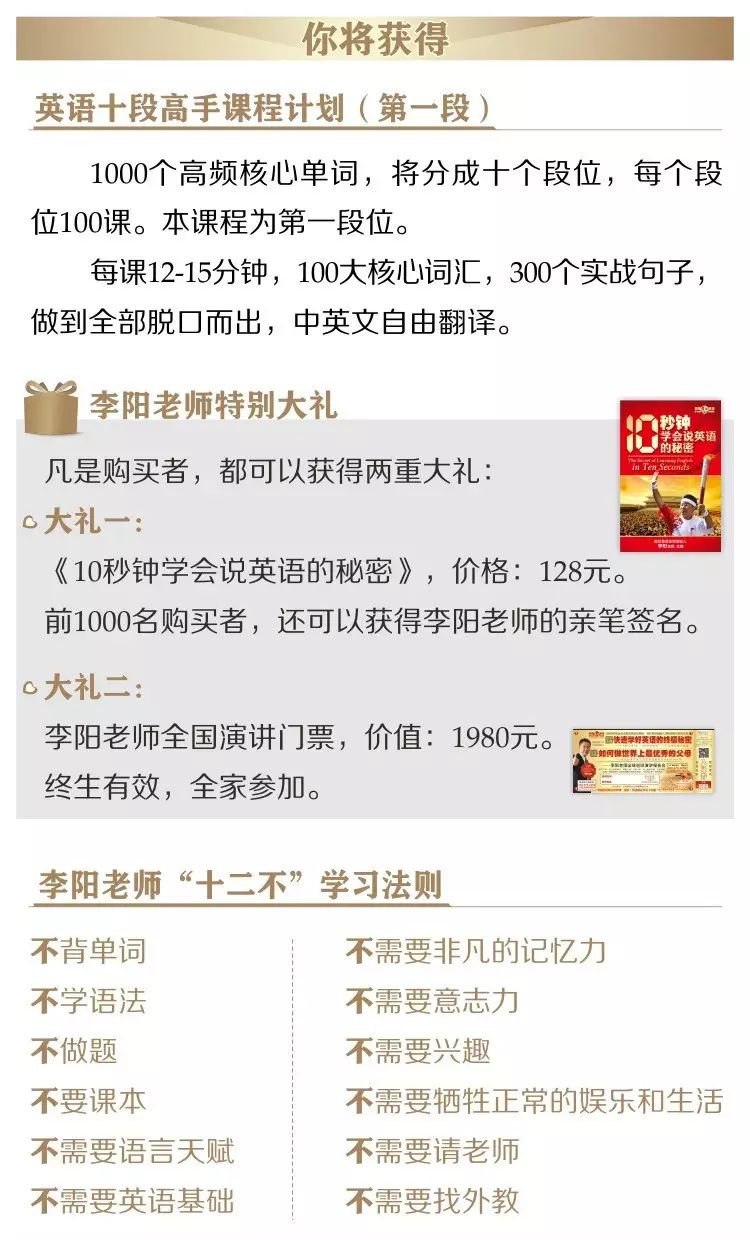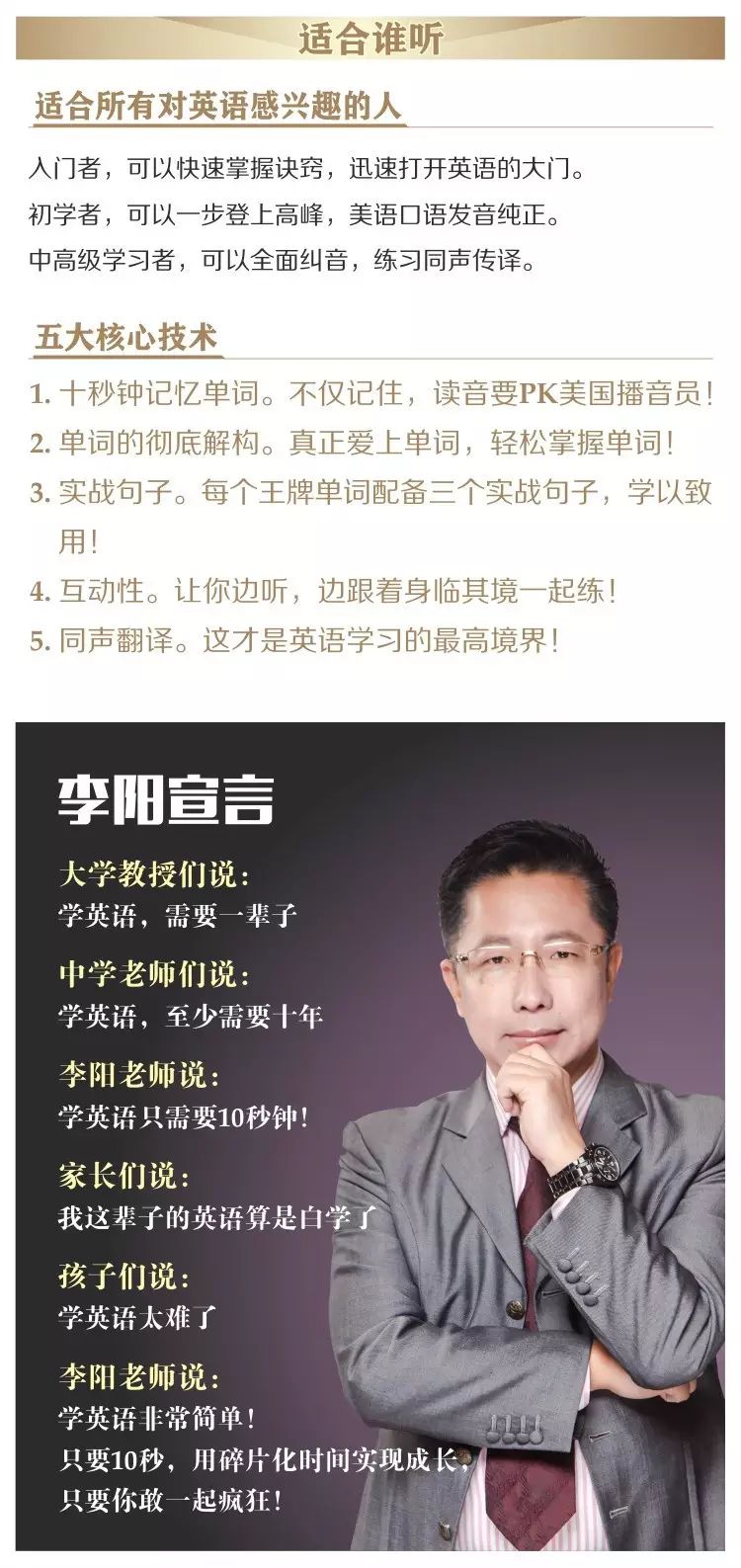 李阳老师亲自主讲,首次倾囊而出!颠覆你对英语的一切认识,让你重新爱上英语!请仔细阅读内容简介,并且持续关注订阅我们的课程!