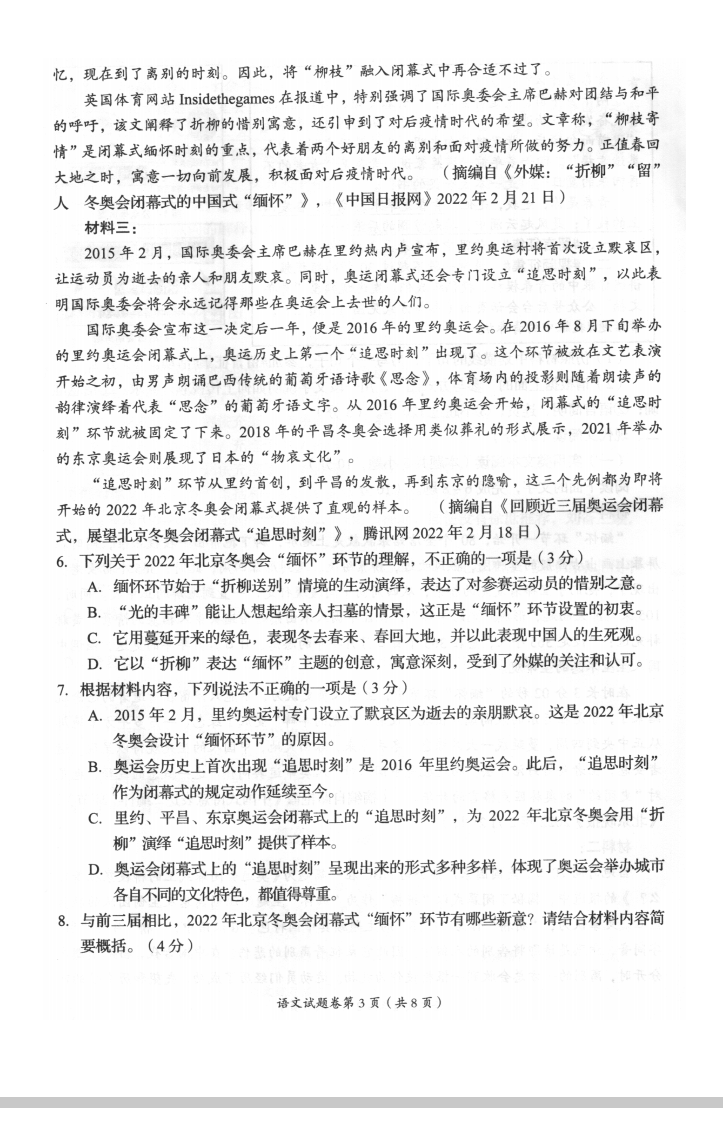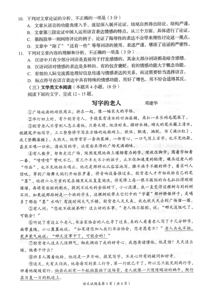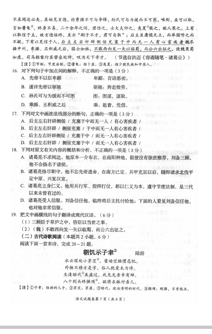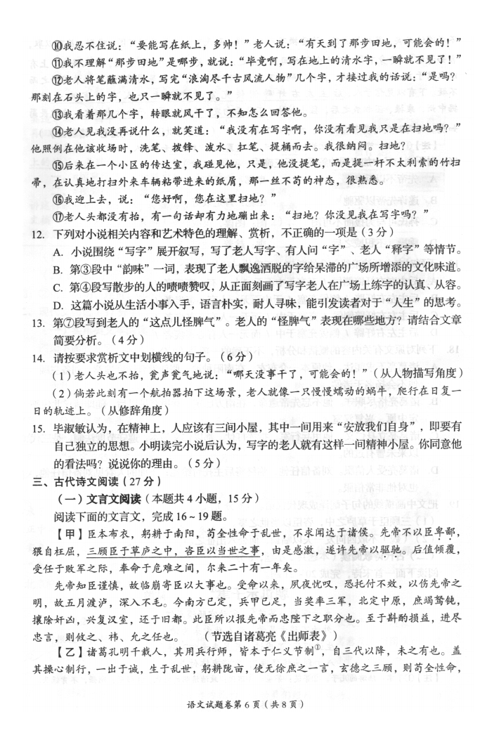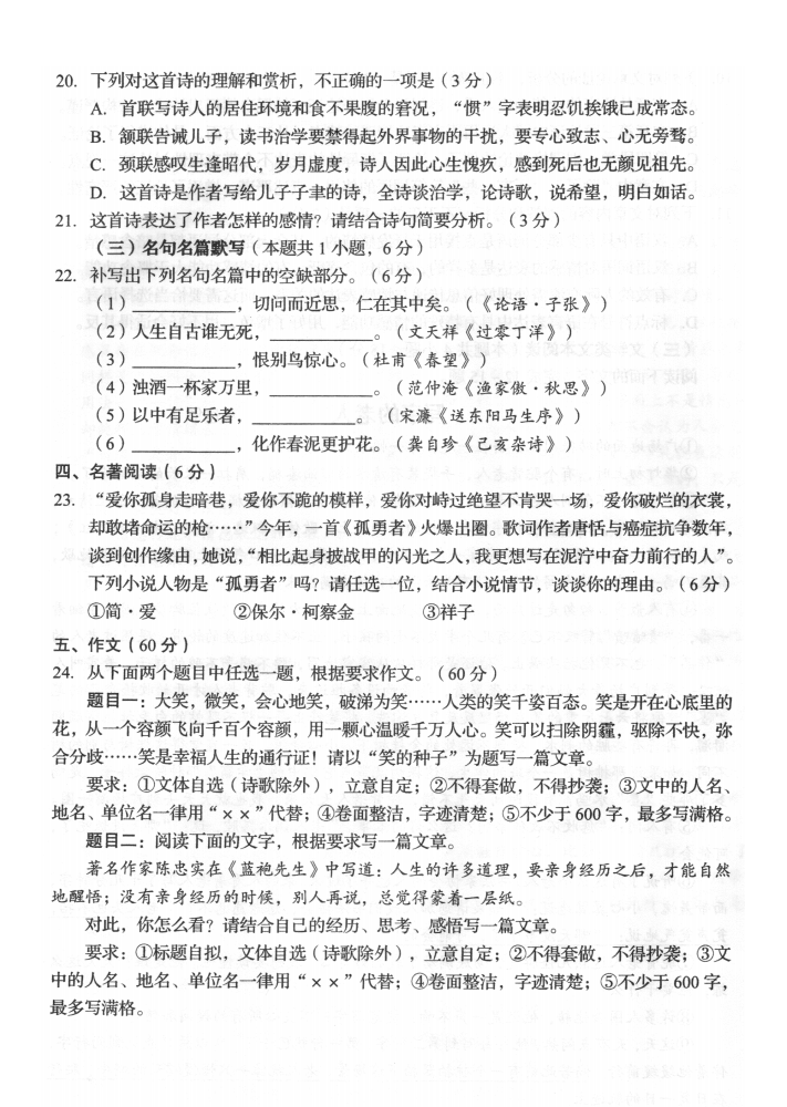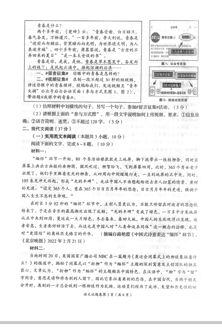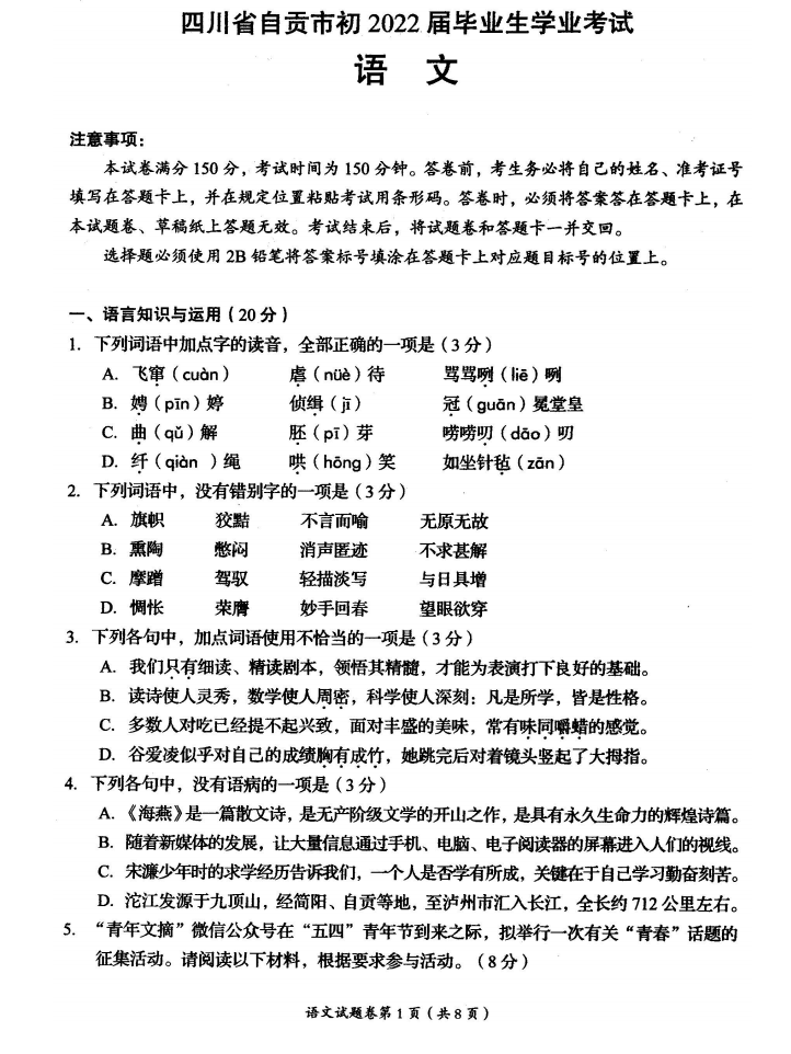 2022四川自贡中考语文试着