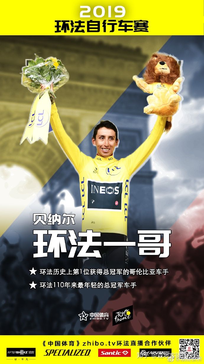 经过21个赛段、3366公里的较量,第106届环法自行车赛7月28日在巴黎香榭丽舍大街落下帷幕。英力士车队的贝尔纳尔以82小时57分的总成绩,成为环法历史上首位加冕总冠军的哥伦比亚车手。