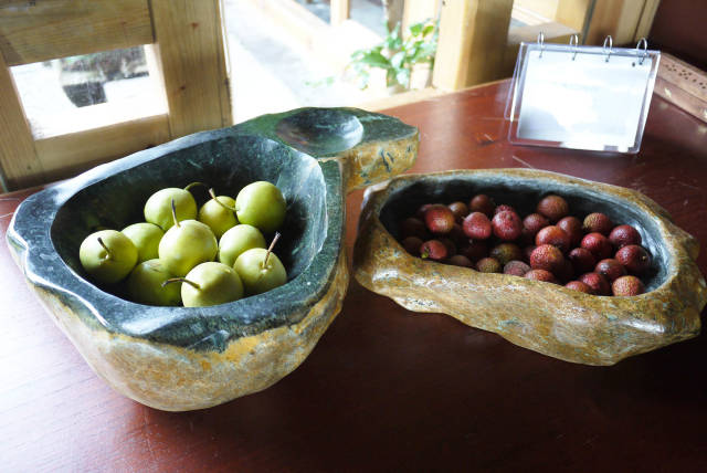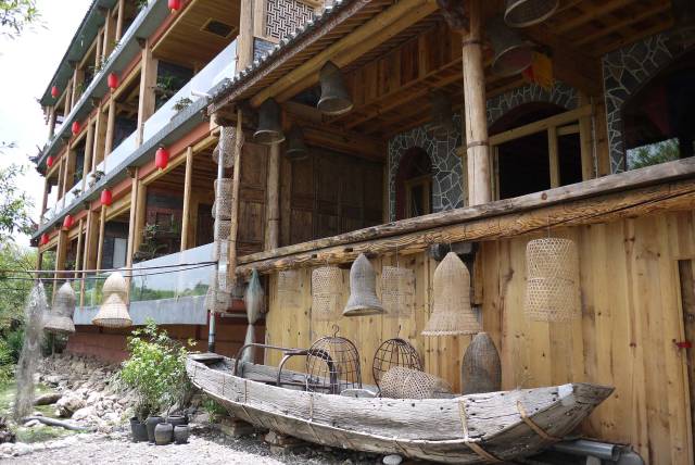 或许这也是我对这次旅行放低期望却得到高回报的缘由吧,仔细想来,让我心胸舒畅的不仅只是这外在的美景,桃源人家度假别院的设计和设施等都对这美好心情有推动力。火塘、陶罐、老渔船、木雕门窗、青砖、土、石、木,一个个柔软而经典的记忆元素,构建了一个现代人梦寐以求、等待千年的“世外桃源”,一个人与自然和谐诗意栖居的典范。