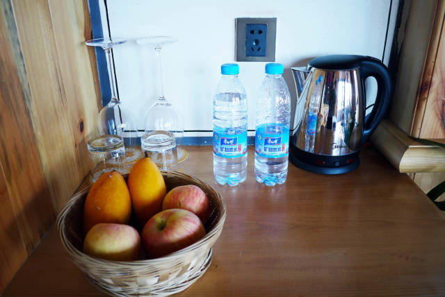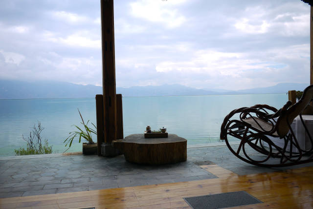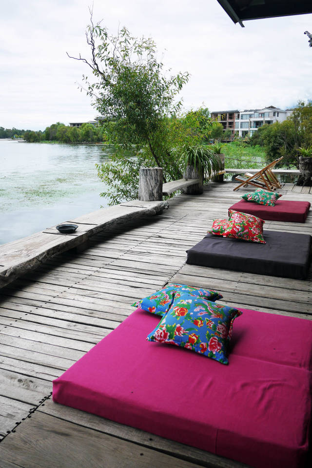 酒店大堂和大堂外的亲水平台,是住客们最喜欢的空间。只要在此落座,客栈的伙伴们就会立即斟上一壶热茶和一盘水果,无论美景还是这些茶点,都不用再额外付费。所以,即使不是住海景房,其实也可以拥海入怀,并在此欣赏洱海之月的天下美景。