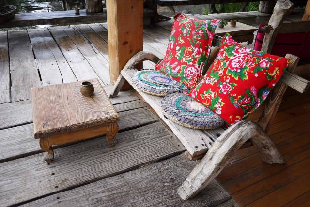 如果你喜欢简单朴素的生活,你可以认为桃源人家是一个农家院子,有五谷青菜南瓜、有油灯彩绘照壁。如果你喜欢忆旧,你也可以认为桃源人家是一个小型的地方文化博物馆,这里有主人精心收藏的反映白族人民各个时期的劳动生产工具、家具和文物器皿,这些珍贵藏品随意地摆在庭院的各个角落,给人一种时空错乱、文明嬗变的奇异景象。院内到处有客人休息、饮茶、弹琴的地方,即使置身卧室,你也可以倾听下关风、遥望上关花、卧赏苍山雪、仰望洱海月。这还远远不是桃源人家的全部,它循古却不保守,一些独具匠心的设计,会让你叹为观止。比如顶着苍穹和满天繁星进入梦乡,比如将疲惫的身心柔软地置入几条旧大船做成的睡床里,再比如在“稻花香里说丰年,听取蛙声一片”的诗句中,回归古典的诗情画意。