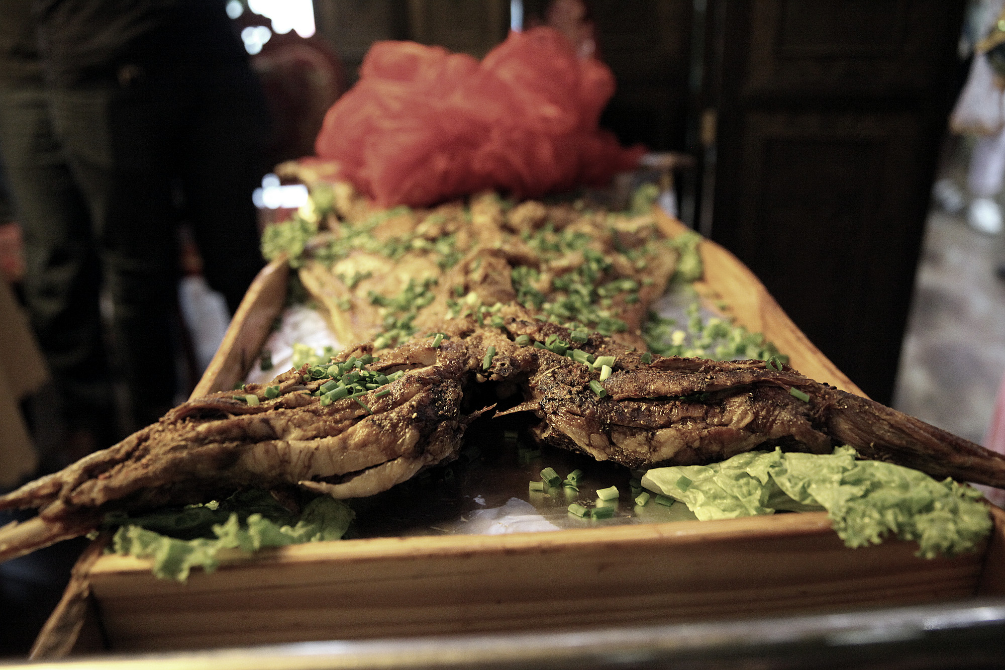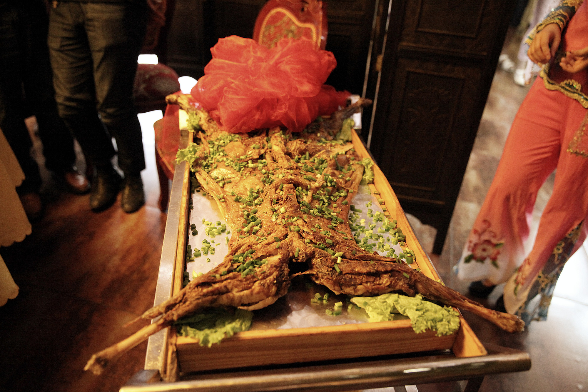 如果说吃正宗的烤全羊,贺兰山下的全羊,那绝对是世间的美味。经过一个多小时的焖烤,一支全羊就热腾的端上来了。