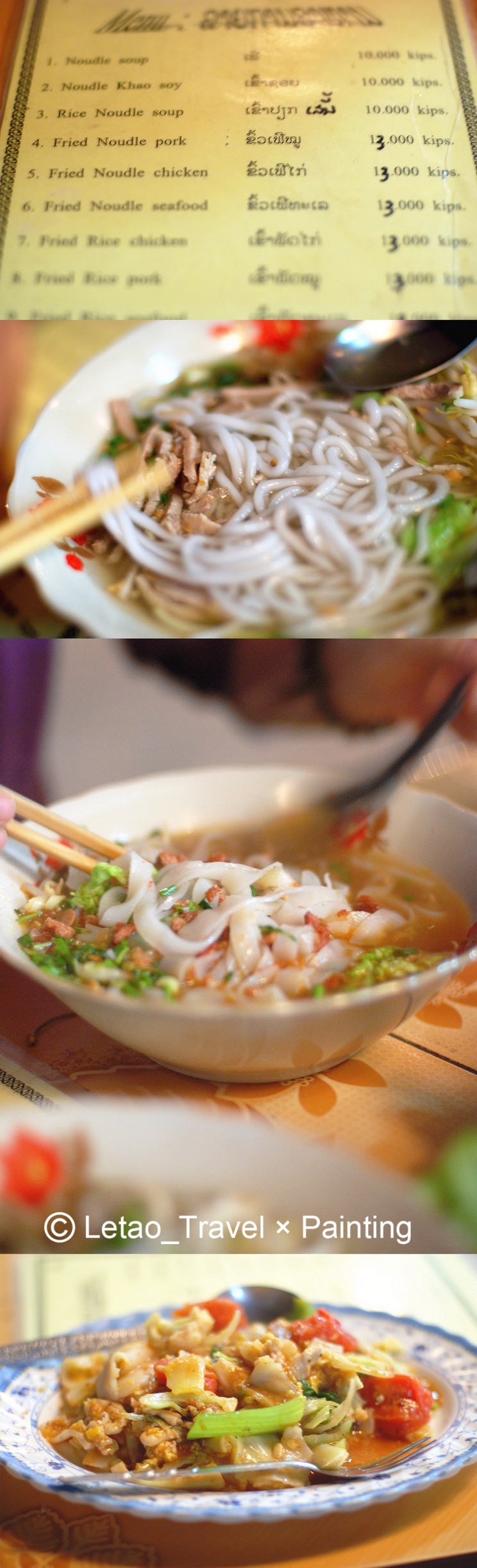 看似高级的餐厅总是让穷酸的我们有些胆颤,还好这里大部分餐厅会将菜单和价格摆在门口等你来翻看,觉得合适了再进去吃~!中档餐厅里的正餐价格约15000~35000基普(人民币15~28元)