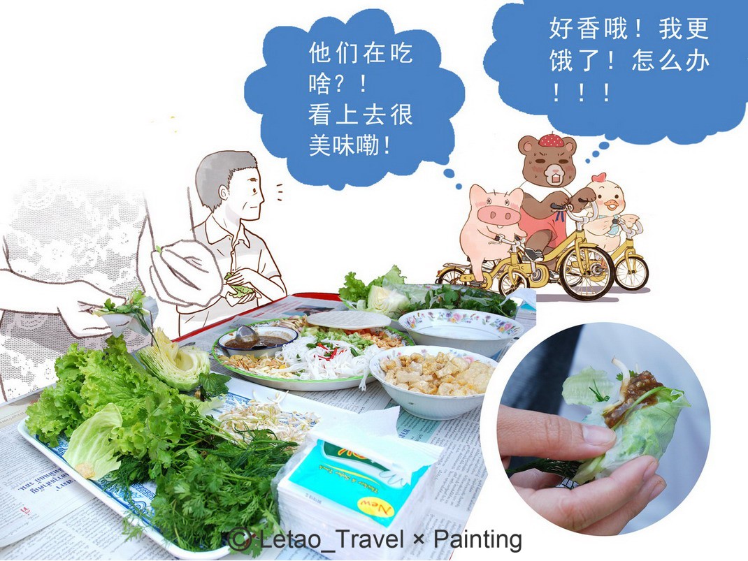 而我们仨真的厚着脸皮接受了邀请!因为“老挝春卷”看上去实在太诱人……肚子又实在太饿……