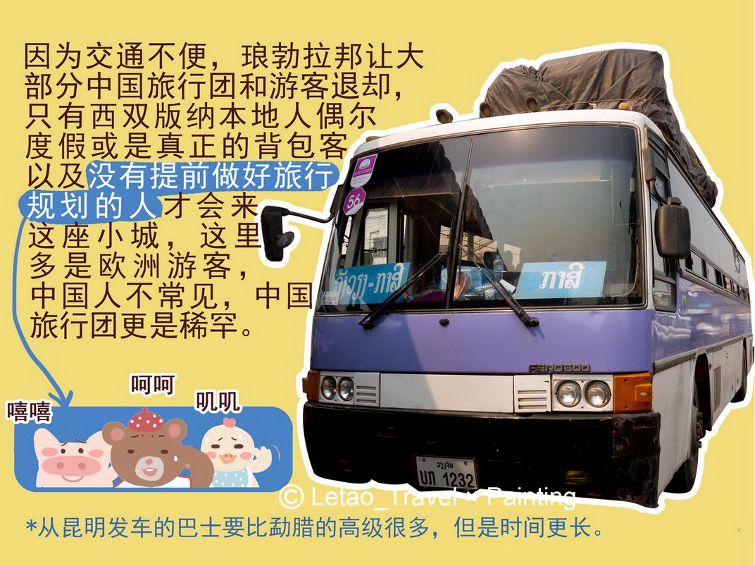 从云南西双版纳州的勐腊坐国际巴士到琅勃拉邦约400公里,启程时问司机什么时候能到,司机拍着胸脯保证只需要六个小时。https://mmbiz.qlogo.cn/mmbiz/oP5BMo8WPQ9kicdWokk6BLfk7w7KkRTq4FmhJfkdrpmka78FVyLcrDsibV4GqZdZjqRt4hNib1piar1ukbLFOekWicA/0然后……我们坐了整整17个小时的长途车!不愧是曾经的法国殖民地,从骨子里秉承了法国人散漫的时间观念=..=!