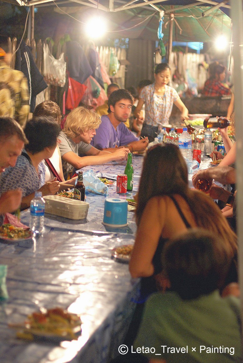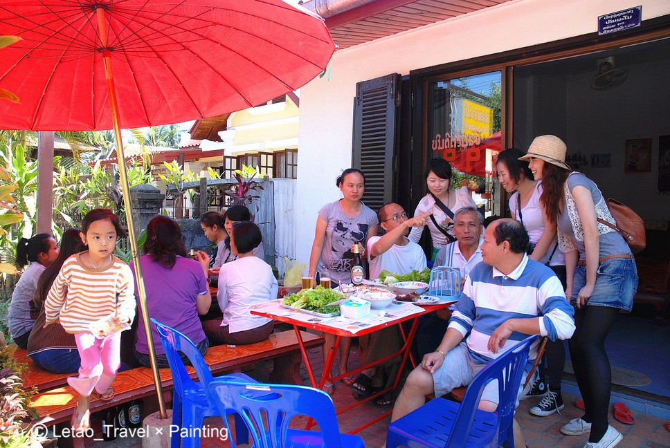 不少。路边有一家人正在聚餐,可能是眼神充满饥饿?或是琅勃拉邦的人们太好客?其中有位看似家中长者的叔叔向我们招手微笑,用简单的英文招呼我们一起吃。