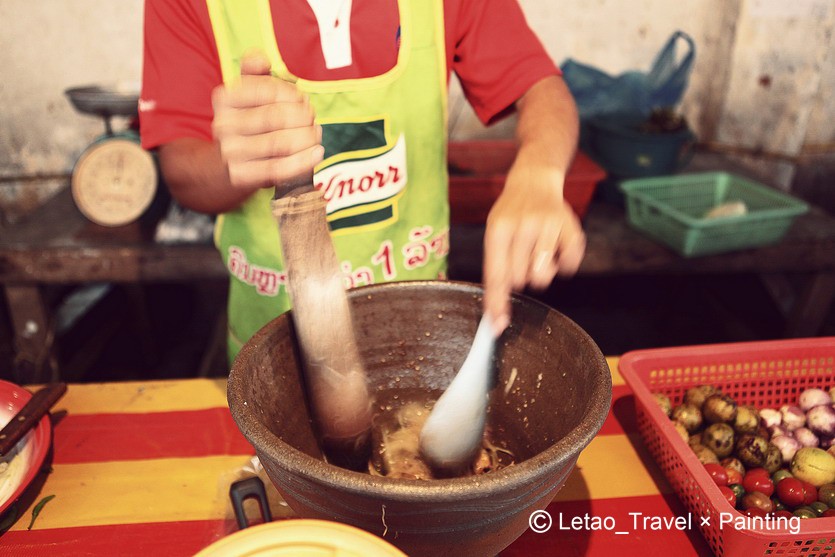 西方游客点最多的是炒饭和烤罗非鱼,最受当地人欢迎的是槄菜 把各种凉菜+辣椒放在石碗捣碎。