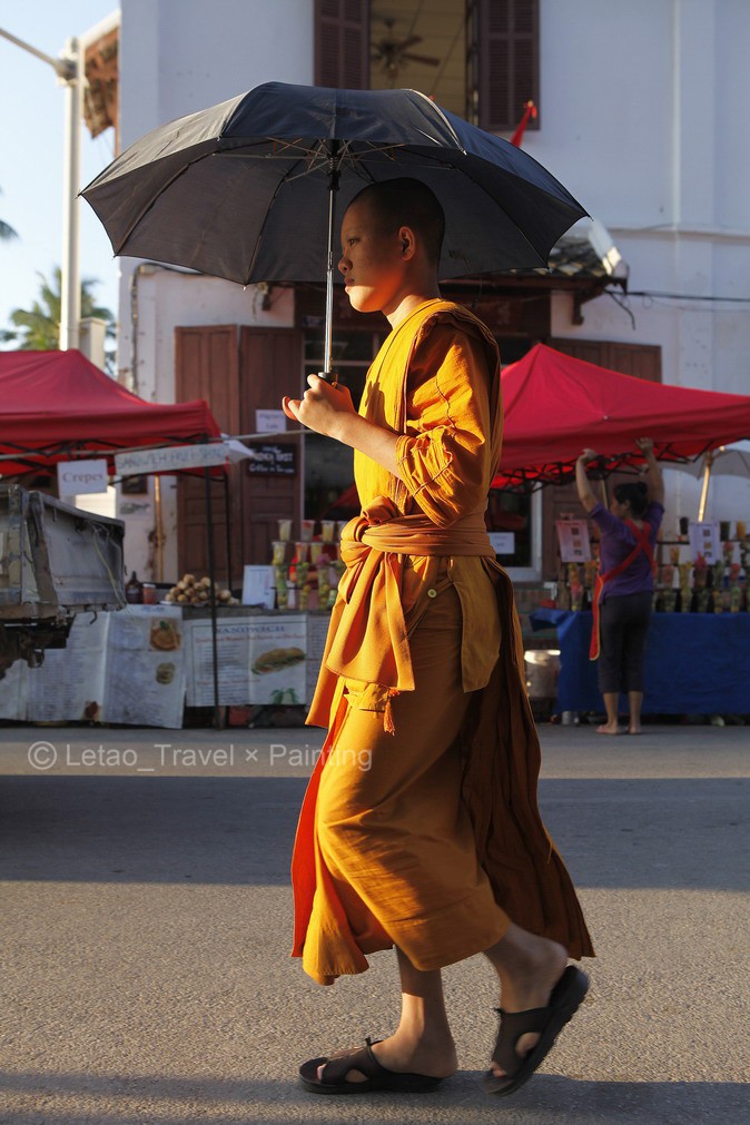 在琅勃拉邦市区就有30多座佛寺,男孩子们满7岁后到寺庙修行是这里的习俗,修行短则2、3年,长则数十年。因此常会看到穿着橙色僧袍的小和尚走在这里的大街小巷。