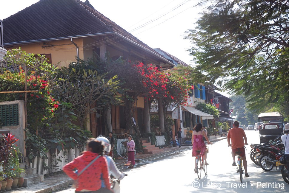 到达琅勃拉邦第一天,一直睡到中午才出门,因为没有提前做“功课”,饥肠辘辘的三人只好骑着车边游览边找食。