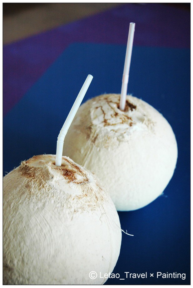 到湄公河畔的钟乳石洞探险,当地村民砍了两个椰子给我们解渴^_^