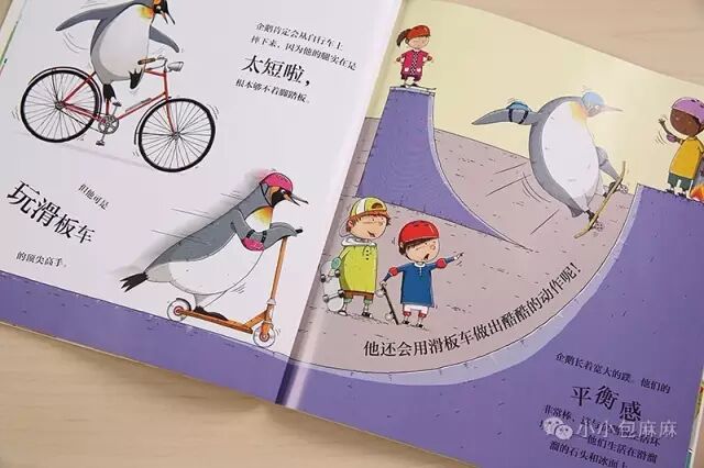 比如,要表达企鹅耐寒,它不会简单直白地说“企鹅能在北极零下80度的低温中生活”,而是给出这样的问答“如果企鹅去超市,会发生什么事呢?”“它会在冷鲜柜里找到家的感觉”,孩子一下就明白了,瞬间就记住了,多么棒的idea!在这样的问答间,孩子的好奇心、想象力和求知欲up