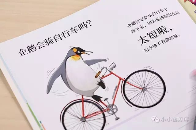 于是产生了很多奇思妙想的问题。比如企鹅会骑自行车吗?看似无厘头的问题,作者却给出了科学的,有逻辑性的答案,产生了很强的碰撞,那么,如果动物朋友来做客,遇到这样的事情会怎样呢?这正是孩子常常忍不住去想、忍不住去问的啊!