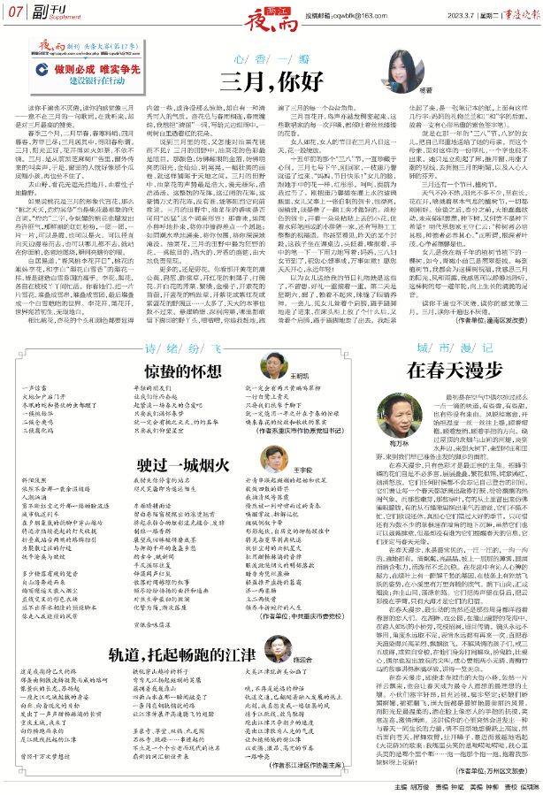 记录:《重庆晚报》2023年3月7日刊发诗歌《轨道,托起畅跑的江津》收藏存谢。