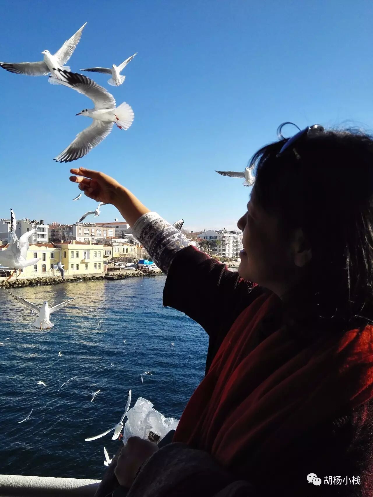 终于见到蓝色土耳其。在游轮上拿提前准备好的面包喂海鸥,土耳其的海鸥很肥硕,是我在昆明见到的海鸥的两倍大,而且是羽毛是花色的。