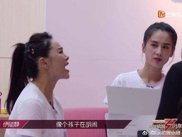 伊能静直接分好了词,然后开始指导,黄圣依无语了,张萌唱起了海豚音。伊能静跟黄圣依的对话的时候心里一定在想说:“张萌妹妹喜欢就随她就好!”当张萌海豚音开口那一刻,伊能静跟黄圣依的表情似乎已经说明。