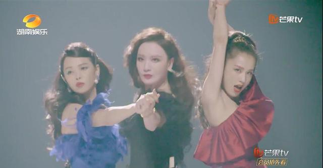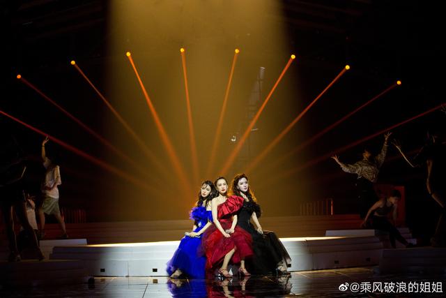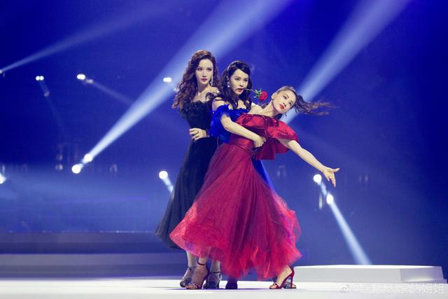 这个舞台编排美到极致,当三个姐姐用嘴叼一枝玫瑰的时候,全场都尖叫,最令人担忧的是张萌的海豚音和声竟然稳住了!