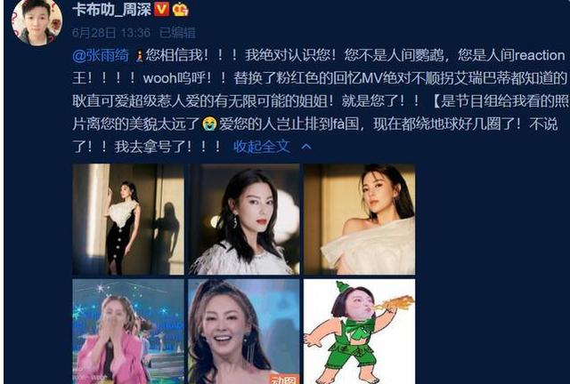 之前周深因为在节目中不认识张雨绮,被张雨绮喊话让他去巴黎排队。之所以安排认张雨绮,也是因为她最近在《乘风破浪的姐姐》中人气高,否则也不会轮到认她。而张雨绮为什么大言不惭地让周深去法国排队,也是为了在节目外找些话题和存在感。然后周深又道歉互动,这波不打不相识互送热搜和话题的炒作,堪称完美。