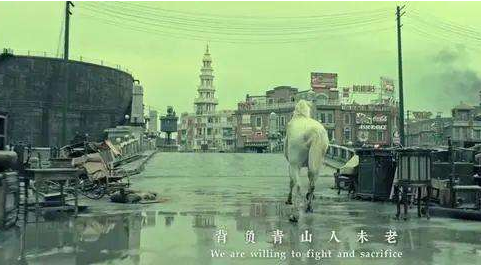 长坂坡和上海滩,两个时代军人的阵地,通过一匹白马隔空穿越相互连结。自由驰骋的白马正是一种完美的暗示,纵然身陷重围,也要突破,世界上自古就没有能困住中华民族的包围圈,导演的豪气借由这一匹生灵的寄意,展现得淋漓精致。