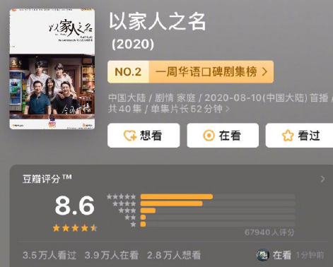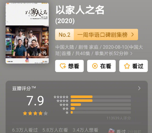 所以《以家人之名》前面几集播出后,迅速聚集了人气,李海潮等两位善良的爸爸,将三个没有血缘关系的孩子以另类方式组合在一起,让观众觉得新奇,同时又觉得很温暖感动。三个孩子,虽然由于家庭缺失,或者遇到奇葩父母,经历了不一样的童年,但还好有两位善良爸爸温柔以待,才没有留下童年阴影,健康快乐成长。所以这部剧开始几集,不仅收视热度高,评分反响也很不错。