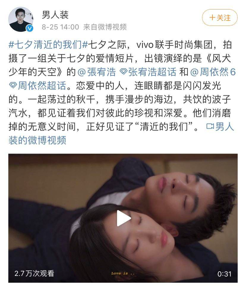 谁知,时尚集团与vivo合作的七夕大片,还是在七夕时给了小编一顿“甜蜜暴击”。