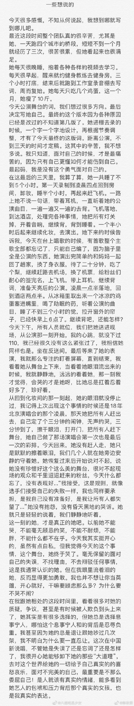 再次,陈秋莳的长文,虽然没有很文艺范的煽情,但诸多细节看得出,他一直陪伴在张靓颖左右,从工作到生活都无微不至,还具体到吃饭睡觉,于是被网友猜测,两人疑似已经同居了。当然,这样也都不是什么值得大惊小怪的事。