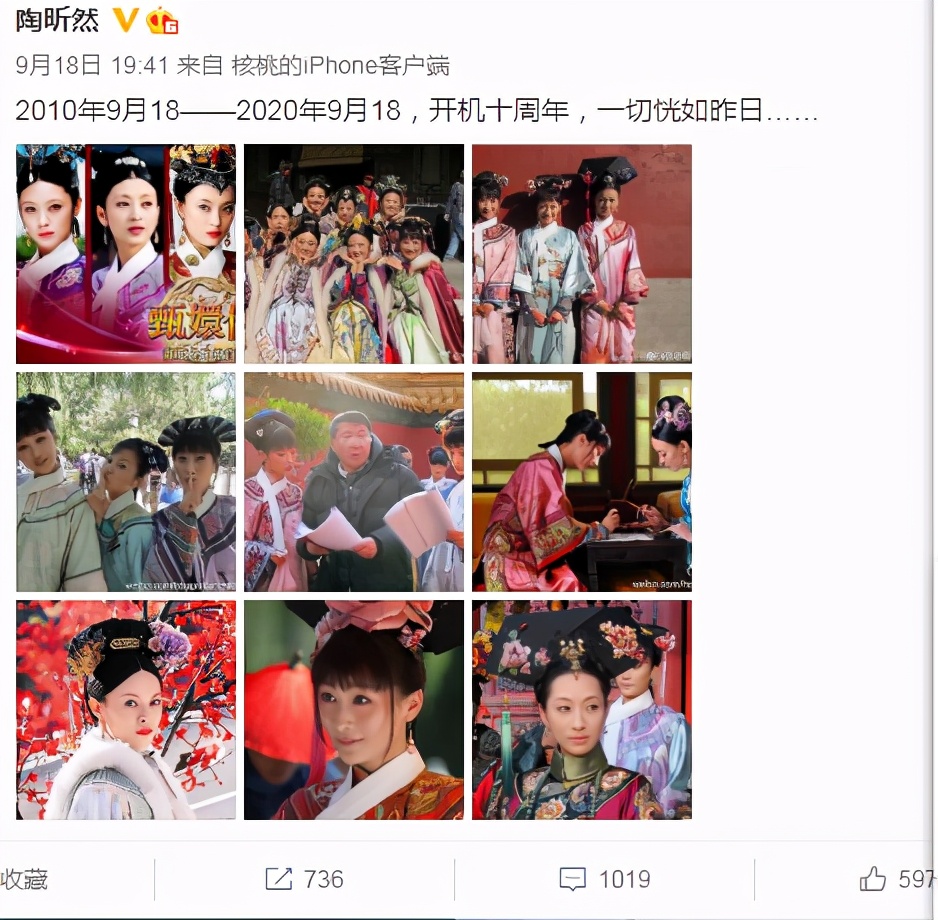 一晃《甄嬛传》面世播出好些年了,只是没想到一晃距离开机已经十年了。因为最近,在《甄嬛传》中饰演安陵容的陶昕然,发照片感叹《甄嬛传》开机十年了,再次提醒大家这部剧面世这么久了,也让人感叹不已。