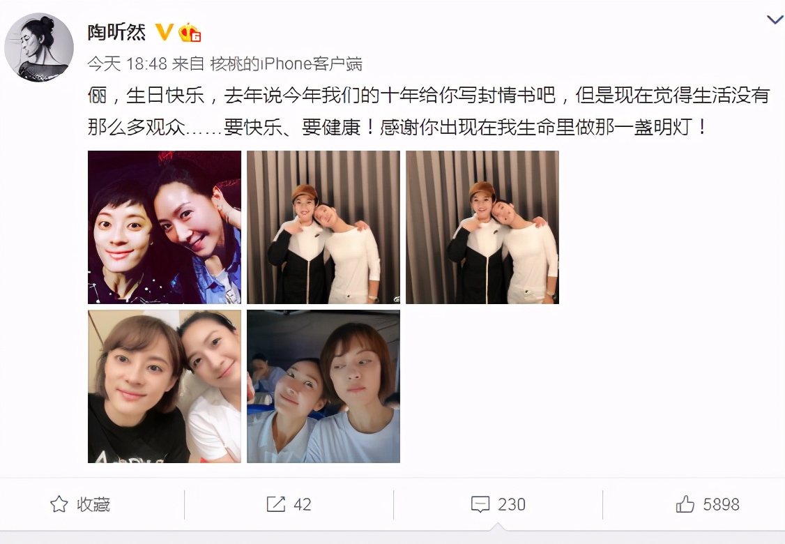 最近,孙俪生日,也恰逢《甄嬛传》开机十周年,所以陶昕然也忍不住为相识十年友情深厚的姐妹孙俪庆祝生日,见证两人的十年低调友情。戏里相杀的甄嬛和安陵容,戏外相爱的孙俪和陶昕然,这种反差很大的友谊,也是弥足珍贵的。