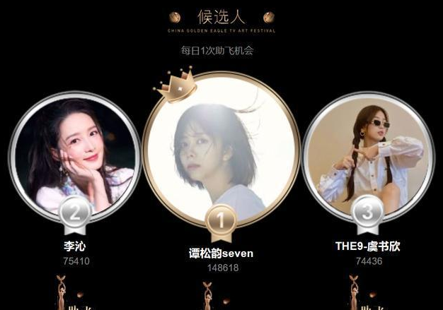 相比之下,有电视剧在湖南卫视播出且人气不错的宋茜之前呼声很高,但刚刚凭借《以家人之名》收获口碑和人气的谭松韵后来居上,粉丝也很给力,李沁的粉丝也在努力拼搏。但最意外的是,在几位中资历最浅作品最少的虞书欣,因为今年选秀火爆,粉丝人气旺,居然也因为一个女配角提名金鹰女神之后,粉丝也在努力投票,表现强劲。