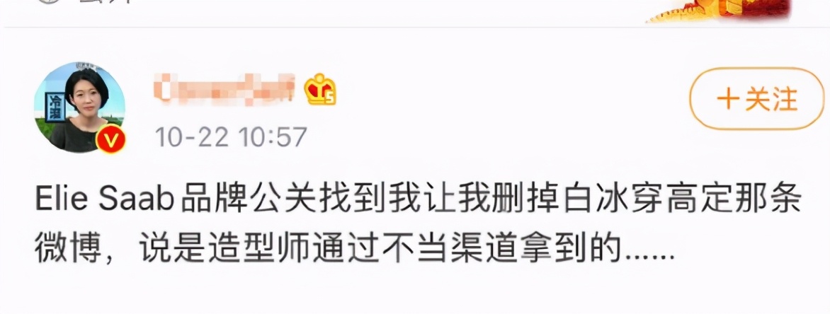 但是,十多天过去了,白冰这张照片,却被网友爆料,称白冰当时穿的高定礼服,是造型师通过不正当的渠道拿到的,此消息一曝光迅速惹来网友群嘲。