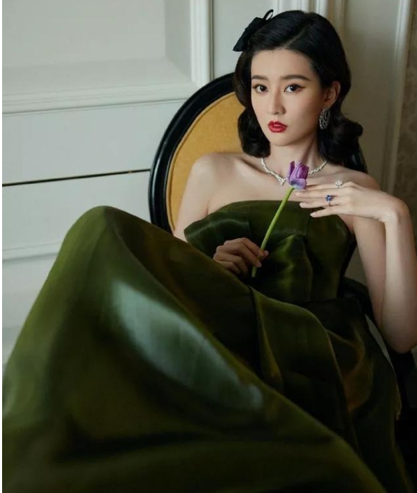 冯女郎钟楚曦这次很惊艳,深绿色紧身旗袍吊带裙,适合自己的纤瘦身材,复古优雅的发型和裙子很般配,也适合自己的气质,不像以前用力过猛效果尴尬。