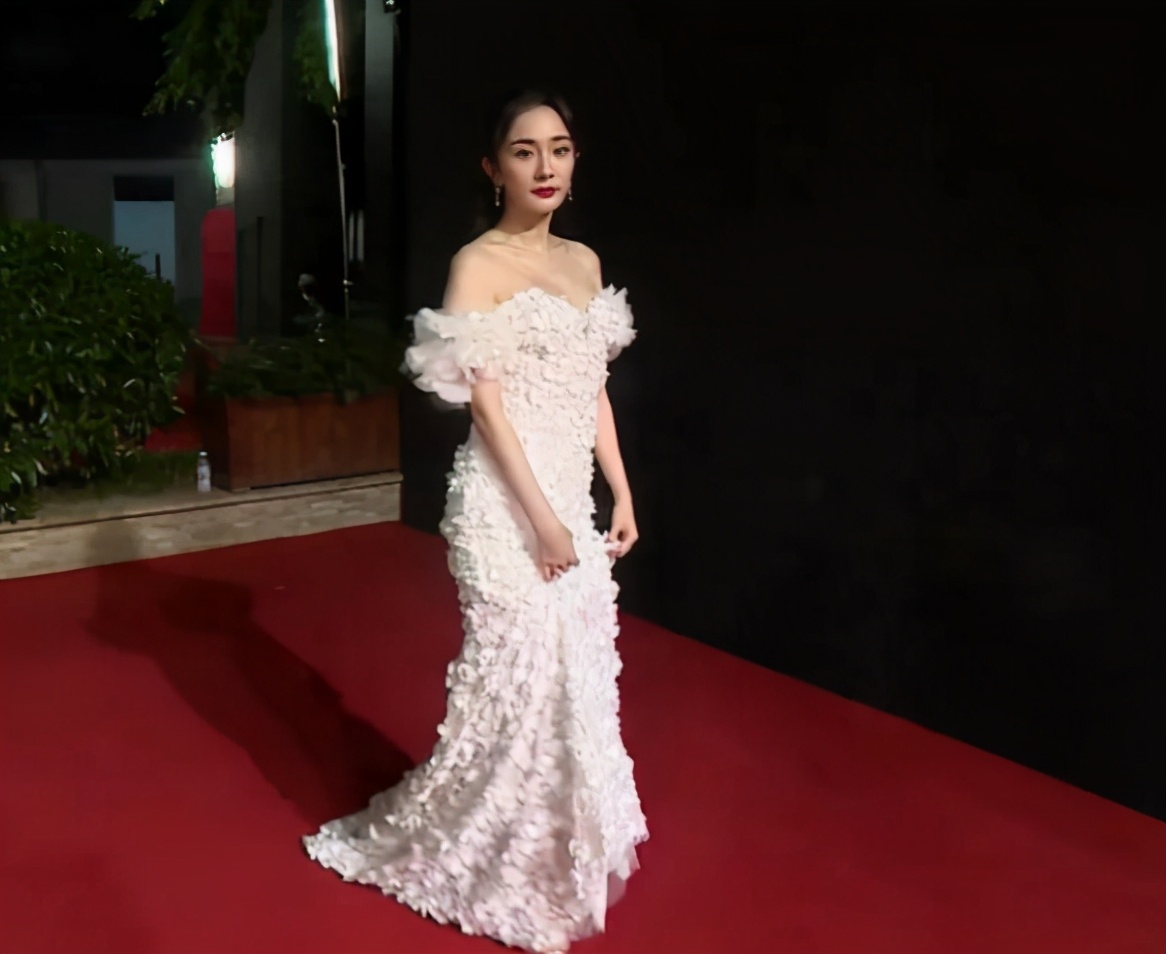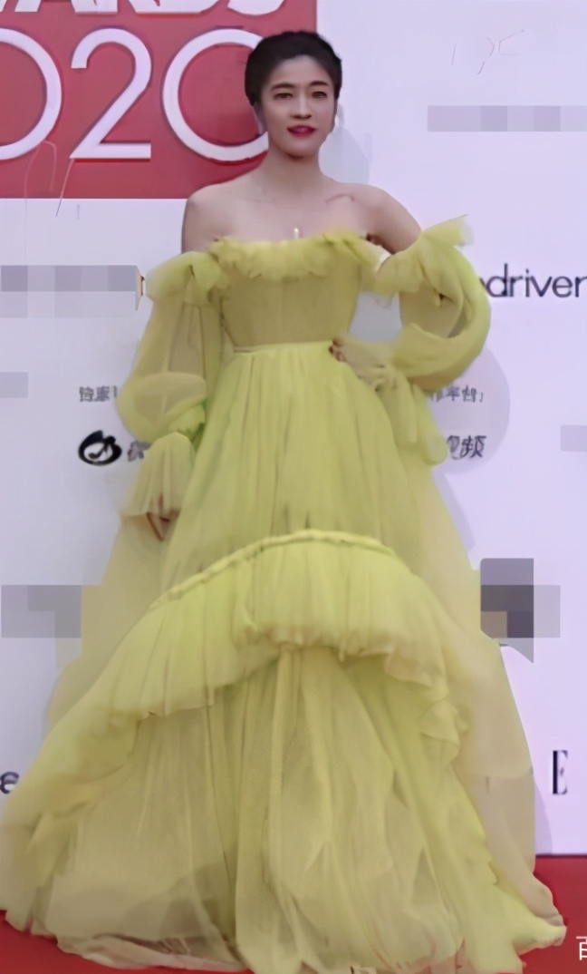 张雪迎长得不错,但身高气质一般,这次选择一身淡黄色哦啥长裙,也是相当累赘,毫无明星风采,也有点失败。