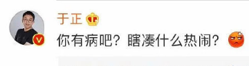 最新的一件事就是于正在自己的动态评论区,骂王茂蕾有病瞎凑热闹,说话可以说很难听,完全不给对方留面子。
