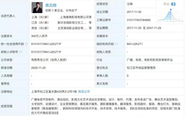 最近,高云翔也被曝光注销了旗下一家影视公司,注册资本300万,是他独资,但由董璇担任监事,看来也是今年前夫妻在事业巅峰开的一家夫妻店。
