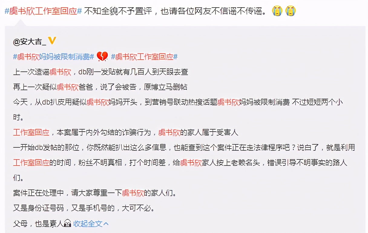 可见,这样的现象,在社会中可能有些普遍,而三位爱豆的经历还有不少相似性和共性,那我们就来简单剖析下对虞书欣妈妈被限制消费这件事及其工作室回应的几点看法!
