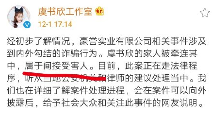 其次,从周震南当初的回应,到现在虞书欣工作室的回应,都折射了一个现象,就是爱豆对家人涉嫌这种大事居然不知道,这种情况,可能有父母可以保护子女进行信息封锁,但是一点不清楚好像也说不太过去!毕竟是一家人,多多少少有些联系,而且周震南黄明昊虞书欣之前的富二代人设,以及进入娱乐圈走红前的花费,都与父母的资金支持密不可分,所以要想完全撇清独善其身,本身就是不合情也不合理!