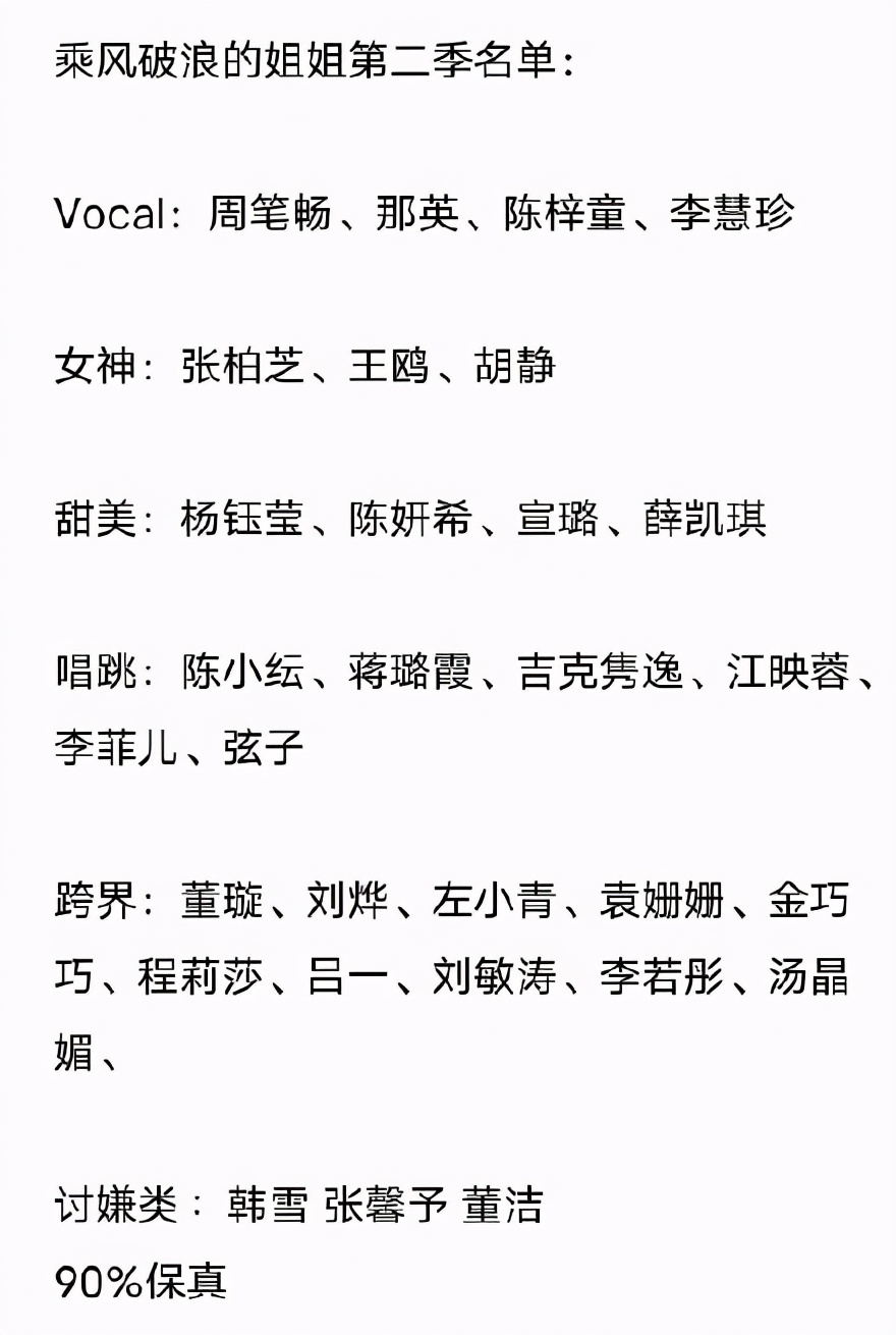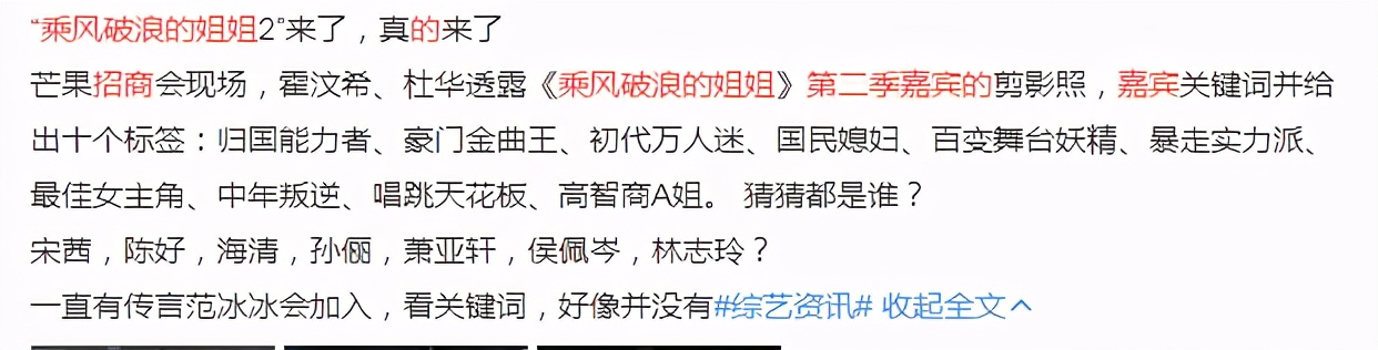 《乘风破浪的姐姐》第二季嘉宾传得沸沸扬扬