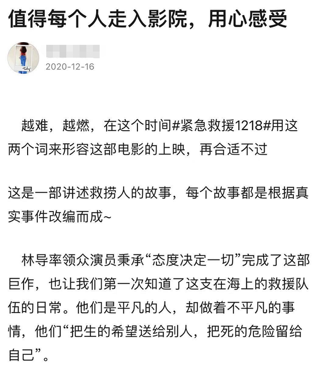 这部今年贺岁档最值得期待的硬核大片,在点映之后收获满满的口碑,无论哪个平台,目前放出的评论中几乎没有差评,不少网友都认认真真写出千字长文,来用《紧急救援》为自己的2020年划上句号。